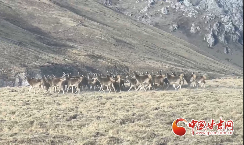 【甘快看】國家一級保護野生動物白唇鹿群“春游”祁連山