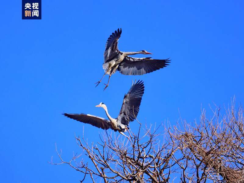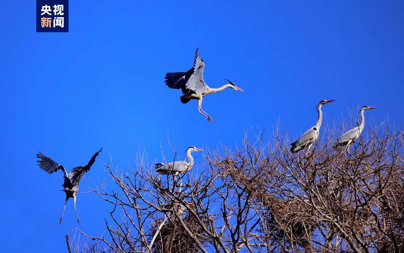 隨著氣溫回升,位于子午嶺腹地的甘肅省慶陽市合水縣太白鎮(zhèn),有成群結(jié)隊的蒼鷺如約從南方飛來。它們或落在樹冠,偎依在一起,或維修著往年搭建好的巢穴,開啟新一輪的繁衍生息。子午嶺腹地是天然的生態(tài)林區(qū),近年來,當(dāng)?shù)鼐C合實(shí)施固溝保塬、退耕還林、植樹造林等工程,森林覆蓋率達(dá)到69.82%,引來眾多珍稀鳥類繁衍生息。(總臺記者 焦?。?/p>