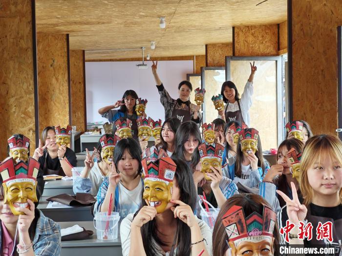 6月4日,德江當(dāng)?shù)貙W(xué)生在博物館體驗(yàn)畫儺面具。(受訪者供圖)