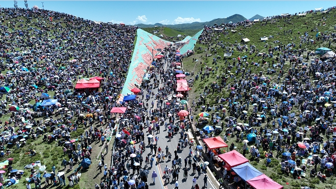 盛夏的甘南到了如詩(shī)如歌的最美季節(jié),艷陽(yáng)高照下的合作當(dāng)周草原天藍(lán)草碧格?;ㄩ_(kāi),數(shù)百頂潔白的帳篷和盛裝出行的甘南各族群眾將這里裝扮成色彩斑斕的最美畫(huà)卷。
