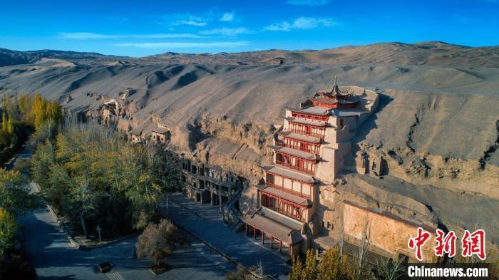 圖為敦煌莫高窟標志性建筑“九層樓”。(資料圖,敦煌研究院供圖)
