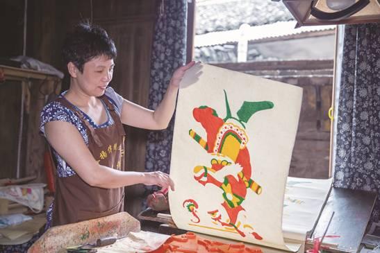 一日為師,終身為父。鐘海仙技藝好、人品好,對(duì)家人有擔(dān)當(dāng),對(duì)尹冬香也非常關(guān)心,傾囊相授。因?yàn)槟戤嬙诙煊∷?,下半年才有事做,上半年尹冬香就去其他作坊打工,一邊糊口,一邊學(xué)習(xí)掌握灘頭紙文化的其他技藝。尹冬香善學(xué)肯做,很受歡迎,下半年師父來(lái)領(lǐng)人時(shí),對(duì)方總是不愿放人,為此還得罪了一些作坊。后來(lái),尹冬香一去上工就講好,到了冬天必須要跟師父回去印年畫,大家也就不怪了。
