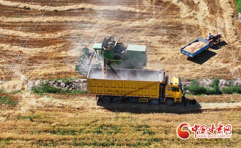 眼下,位于祁連山下的民樂縣南古鎮(zhèn)毛城村800畝連片小麥種植基地上,機(jī)聲隆隆,農(nóng)機(jī)手們駕駛收割機(jī)穿梭往返麥田之中搶收小麥,一派忙碌的豐收景象。近期,隨著民樂縣沿祁連山冷涼山區(qū)小麥迎來成熟季,民樂縣種植的26萬畝小麥進(jìn)入了繁忙的收割期。