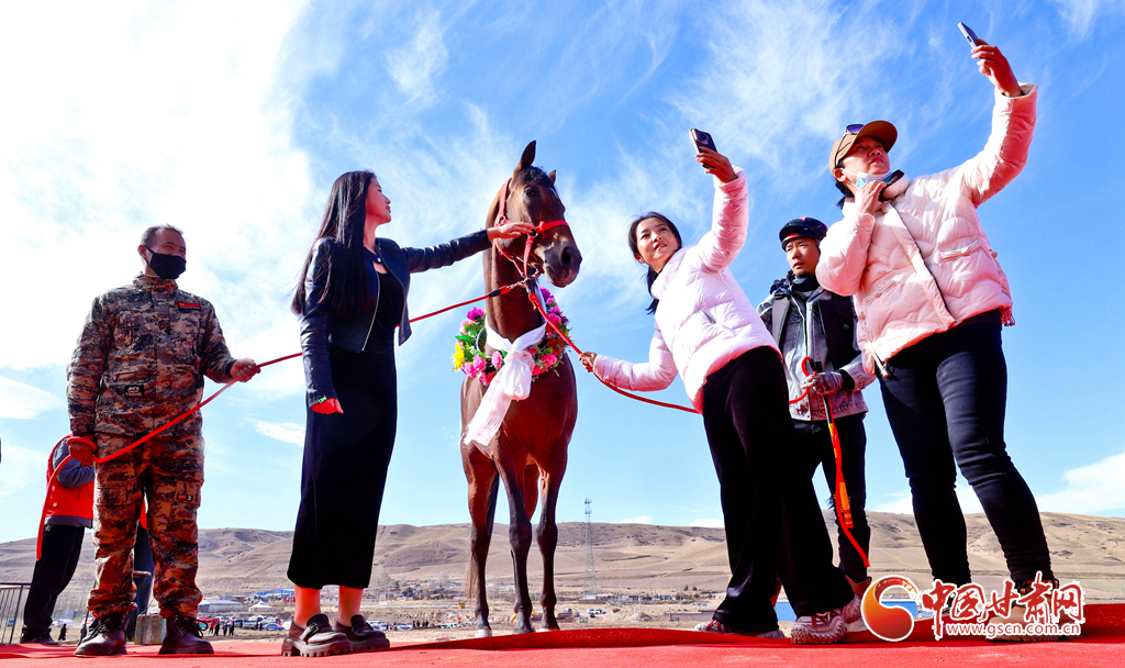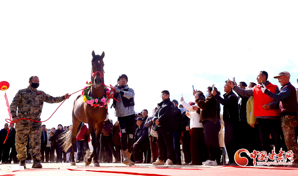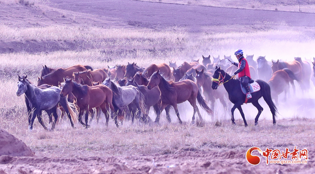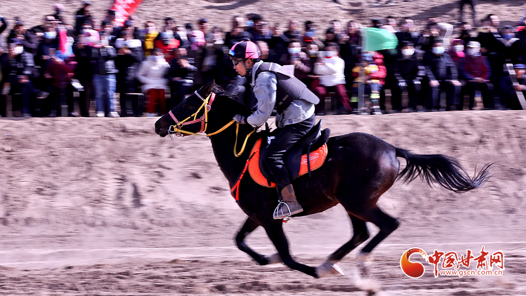 近日,位于祁連山下的甘肅省張掖市山丹縣一賽馬產(chǎn)業(yè)園內(nèi),騎手們正在為游客表演精彩的馬術(shù)運(yùn)動(dòng)。