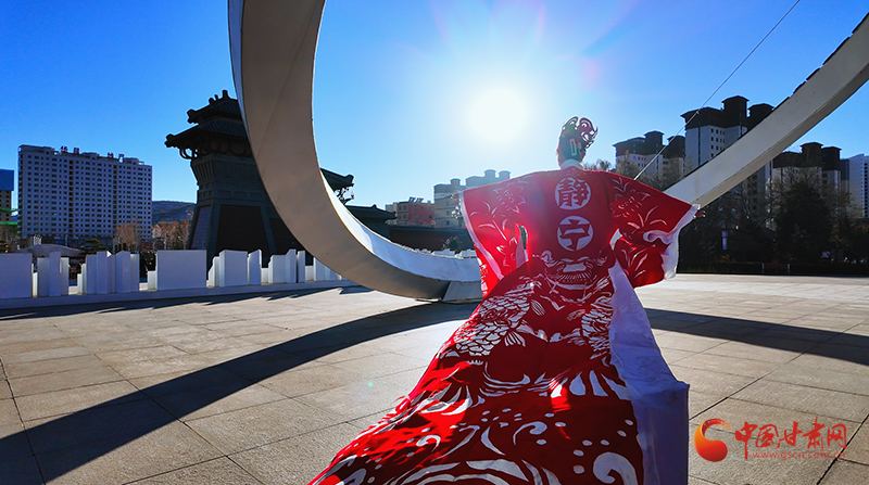 在靜寧縣成紀文化城里,兩名模特身著“盛裝”翩翩起舞,盡情展示自信與優(yōu)雅,緩緩走動間,靜寧蘋果、靜寧果農(nóng)等元素裝飾的紅色剪紙服飾隨風搖曳,讓國家級“非遺”——中國剪紙也流動了起來。這精彩的作品展示,來自仇跟銀的妙手。