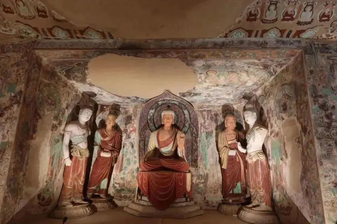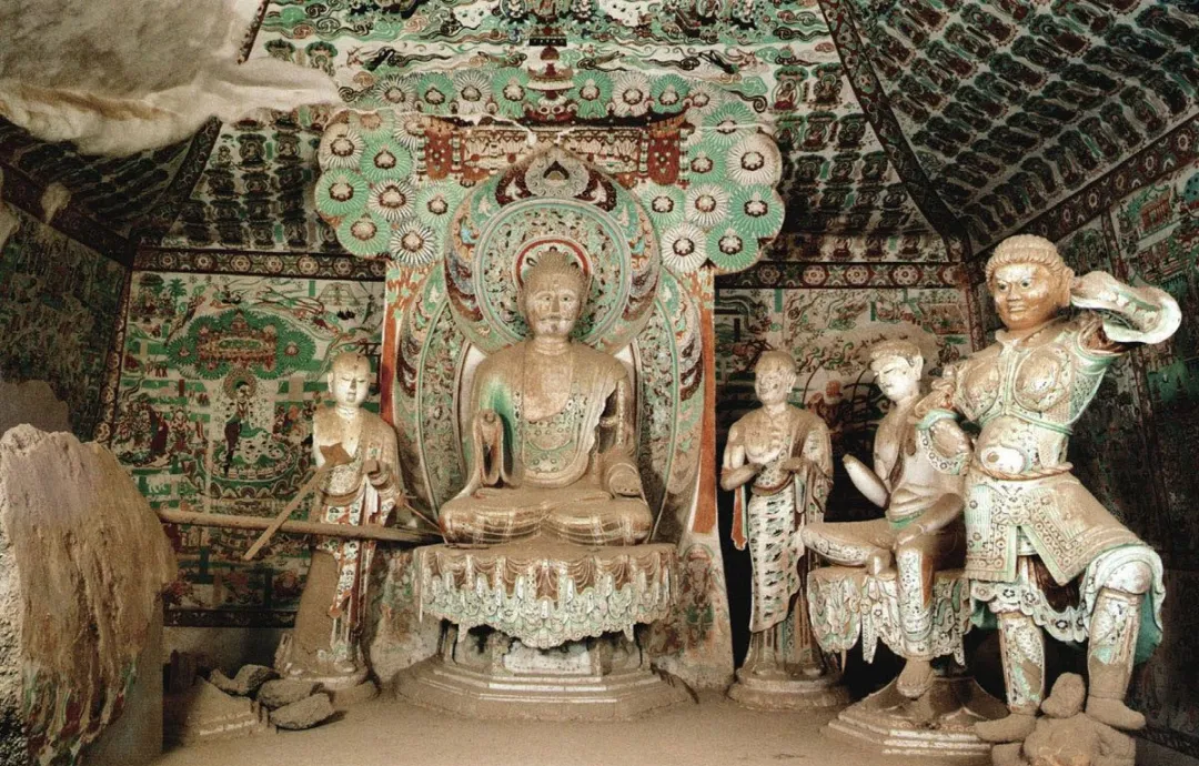 搬遷復(fù)原的洞窟內(nèi),不但保持了原來(lái)壁畫(huà)和塑像的原貌,洞窟內(nèi)的其他部位,如坍塌壁面也與洞窟原貌基本相同。從南湖店搬來(lái)的新建洞窟是磚混結(jié)構(gòu)的洞窟,我們對(duì)洞窟外墻面用礫石進(jìn)行裝飾,這樣洞窟與周邊崖壁、洞窟相一致。這兩個(gè)洞窟被安置在莫高窟北區(qū)大沖溝中,既不破壞和影響原有洞窟,又使其與周邊崖面和洞窟融為一體。如果不被提醒,人們?nèi)菀渍`認(rèn)為它們就是古代所建造的洞窟。