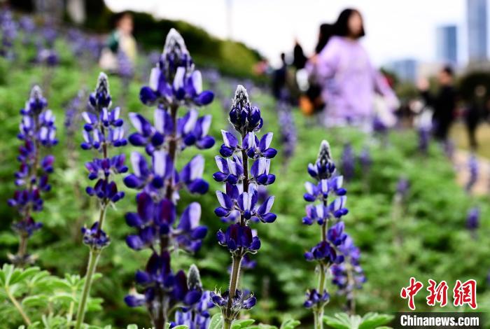 3月16日,游客在公園觀賞魯冰花。春日,福州花海公園魯冰花、小蒼蘭、油菜花等鮮花盛放,吸引了許多民眾前來漫步賞花,享受春天美好時(shí)光。中新社記者 張斌 攝