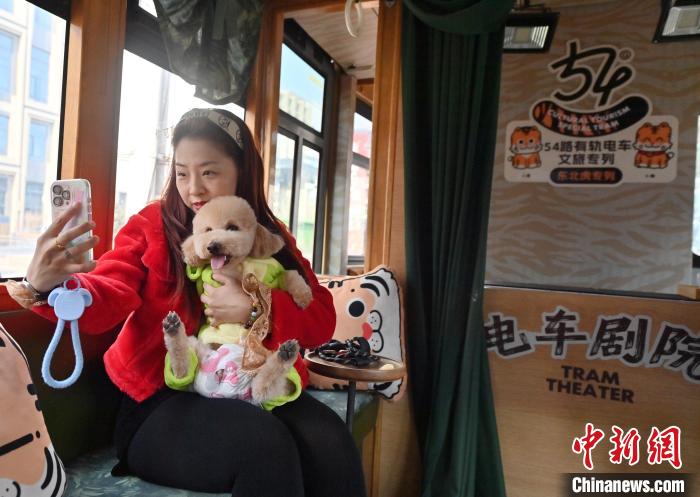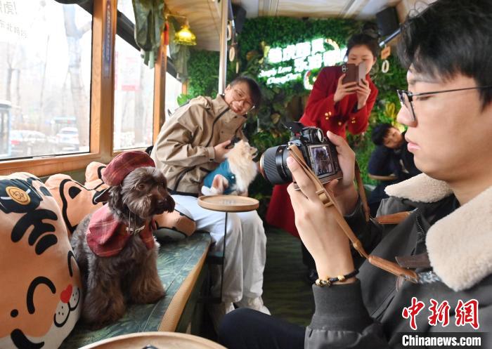 3月16日,吉林長春,寵物和主人在車廂拍照留念。中新社記者 張瑤 攝