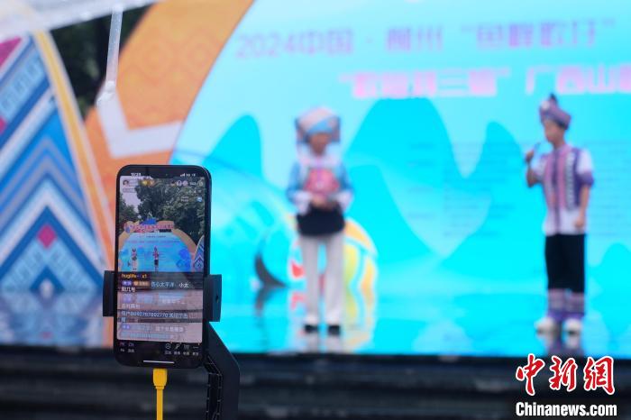 2024年4月,廣西柳州,年輕山歌手同臺(tái)對唱,線上直播吸引網(wǎng)友。(資料圖)劉俊聰 攝