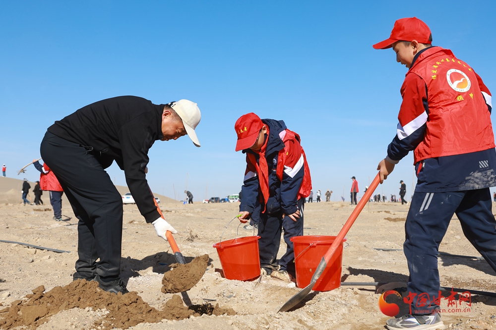 4月9日,酒泉市金塔縣金核公路城西義務(wù)植樹基地,來自酒泉市直機關(guān)和金塔縣的干部職工以及學生開展義務(wù)植樹活動。