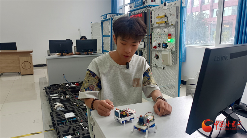培黎職業(yè)學(xué)院信息技術(shù)學(xué)院學(xué)生唐俊杰和他的創(chuàng)新團(tuán)隊最近組裝了兩只機(jī)器狗,通過語音遙控可以實現(xiàn)指令輸出,達(dá)到陪伴、互動的目的。唐俊杰說,“手腦并用、創(chuàng)造分析”鼓勵他們要理論聯(lián)系實際,以動手能力讓圖紙變成現(xiàn)實,機(jī)器狗是他們的在實踐課程中不斷創(chuàng)新探索而來。