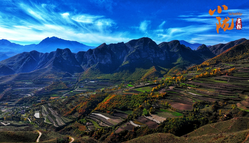 巍峨群山,連綿橫亙。古樸的村莊,山上的樹木,豐收的田地,如同披上了姹紫嫣紅的霓裳,顯得更加寧?kù)o溫暖。