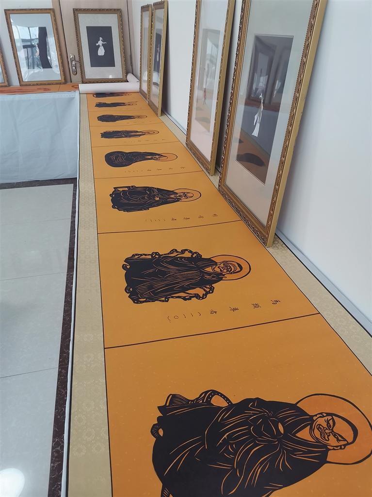 “我是從1989年開始學(xué)習(xí)剪紙創(chuàng)作的,”李自新回憶道,“最開始選的類型就是花鳥,因?yàn)橄鄬?duì)簡(jiǎn)單,是基礎(chǔ)。”然而,他很快就不滿足于此,將目光投向了更為宏大、復(fù)雜的題材。“后面開始剪羅漢、敦煌壁畫。那時(shí)候,心里就憋著一股勁兒,想要挑戰(zhàn)最難的傳統(tǒng)藝術(shù)精華。”