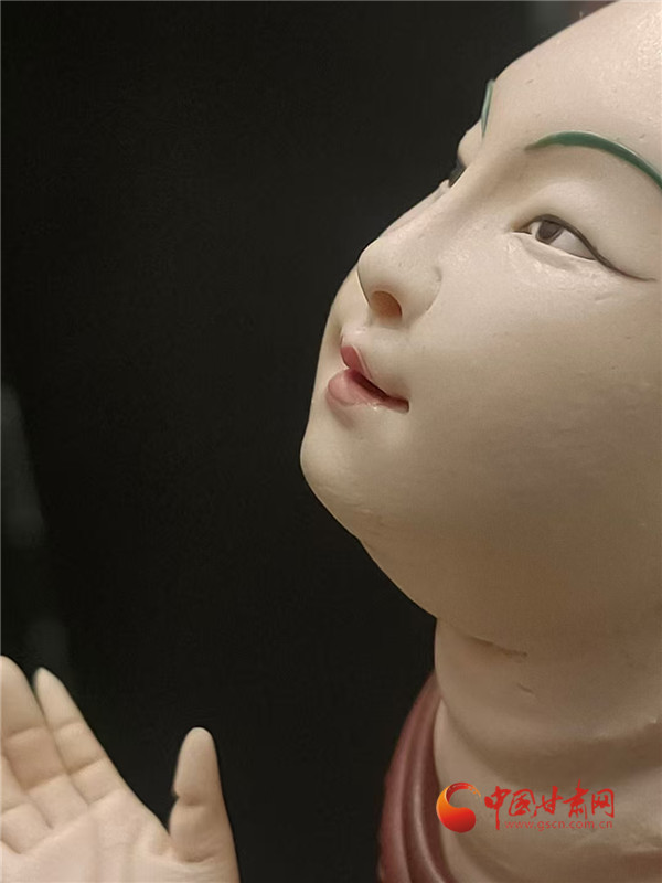 楊凱說(shuō),壁畫是平面的,也是立體的,看著石窟中那些栩栩如生的人物,他就想著如何讓這些繪畫在空間立體起來(lái),成為蘊(yùn)含豐富敦煌元素的面塑。