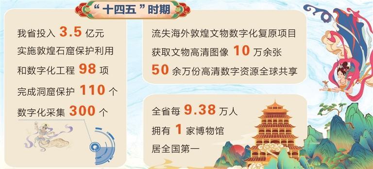在文物保護(hù)提質(zhì)升級(jí)方面,我省投入3.5億元,實(shí)施敦煌石窟保護(hù)利用和數(shù)字化工程98項(xiàng),完成洞窟保護(hù)110個(gè)、數(shù)字化采集300個(gè),建成全球首個(gè)文物保護(hù)多場(chǎng)耦合實(shí)驗(yàn)室,制定國(guó)家和行業(yè)標(biāo)準(zhǔn)27項(xiàng),科研成果服務(wù)16省市及部分共建“一帶一路”國(guó)家;流失海外敦煌文物數(shù)字化復(fù)原項(xiàng)目獲取文物高清圖像10萬(wàn)余張,50余萬(wàn)份高清數(shù)字資源全球共享;第四次全國(guó)文物普查新發(fā)現(xiàn)線索4659條,投入24.26億元實(shí)施900余項(xiàng)重要文保項(xiàng)目;打造河西走廊國(guó)家遺產(chǎn)線路,創(chuàng)建嘉峪關(guān)長(zhǎng)城國(guó)家文物保護(hù)利用示范區(qū),全省文物系統(tǒng)性保護(hù)成效顯著,“中國(guó)特色?敦煌經(jīng)驗(yàn)”國(guó)際影響力持續(xù)提升。