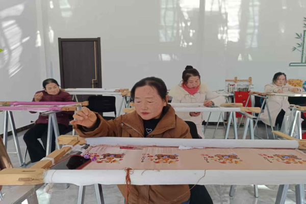 “以前特別自卑,不敢出門。”袁紅艷是一名殘疾人,曾經(jīng)的她因身體缺陷長期封閉自我。轉(zhuǎn)變始于2005年一次鄉(xiāng)鎮(zhèn)刺繡培訓(xùn),在這場培訓(xùn)活動中,她結(jié)識了左煥茸老師,從此踏入刺繡行業(yè)。