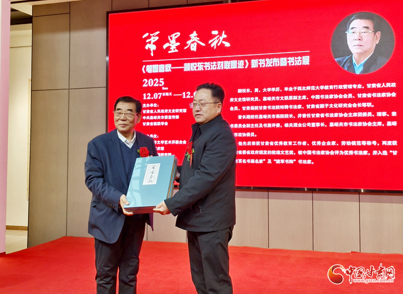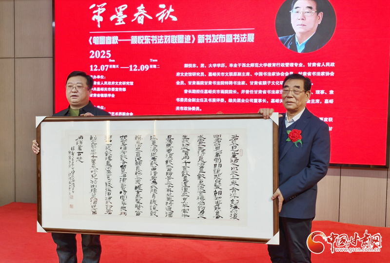 中國甘肅網(wǎng)12月7日訊(西北角·中國甘肅網(wǎng)記者 任磊)12月7日上午,《筆墨春秋—顏悅東書法對聯(lián)墨跡》新書發(fā)布暨書法展在甘肅省藝術(shù)館啟幕。本次展覽集中呈現(xiàn)顏悅東近年來創(chuàng)作的120幅書法作品,同期發(fā)布的新書收錄楹聯(lián)作品330副,系統(tǒng)呈現(xiàn)了作者在書法領(lǐng)域的藝術(shù)探索與創(chuàng)作成果。