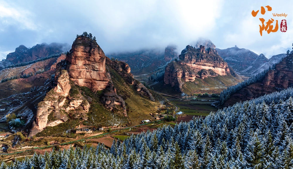 雪后天晴,煙波浩渺,山色空蒙,朱紅色的丹霞與蔥郁的森林、皚皚白雪相映成趣,展現(xiàn)出冬日里別樣的壯麗與靜謐。
