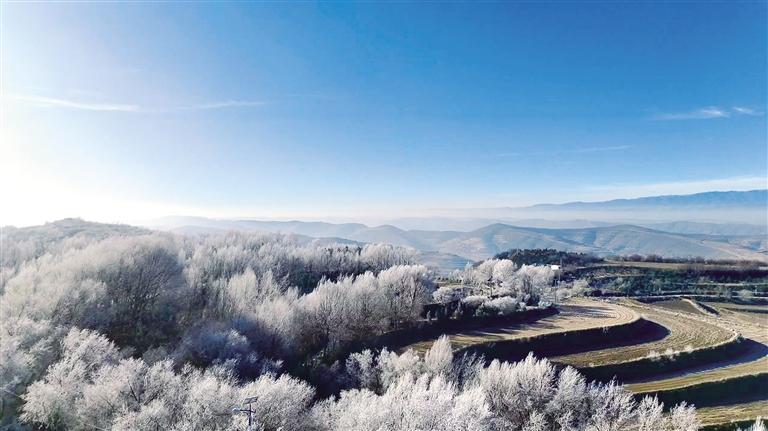 12月17日,一夜寒風拂過榆中縣韋營鄉(xiāng),喚醒了千樹萬樹的冰瑩之花。舉目望去,漫山遍野如披輕紗,萬物凝結成潔白晶瑩的畫卷,移步皆景讓人心曠神怡。