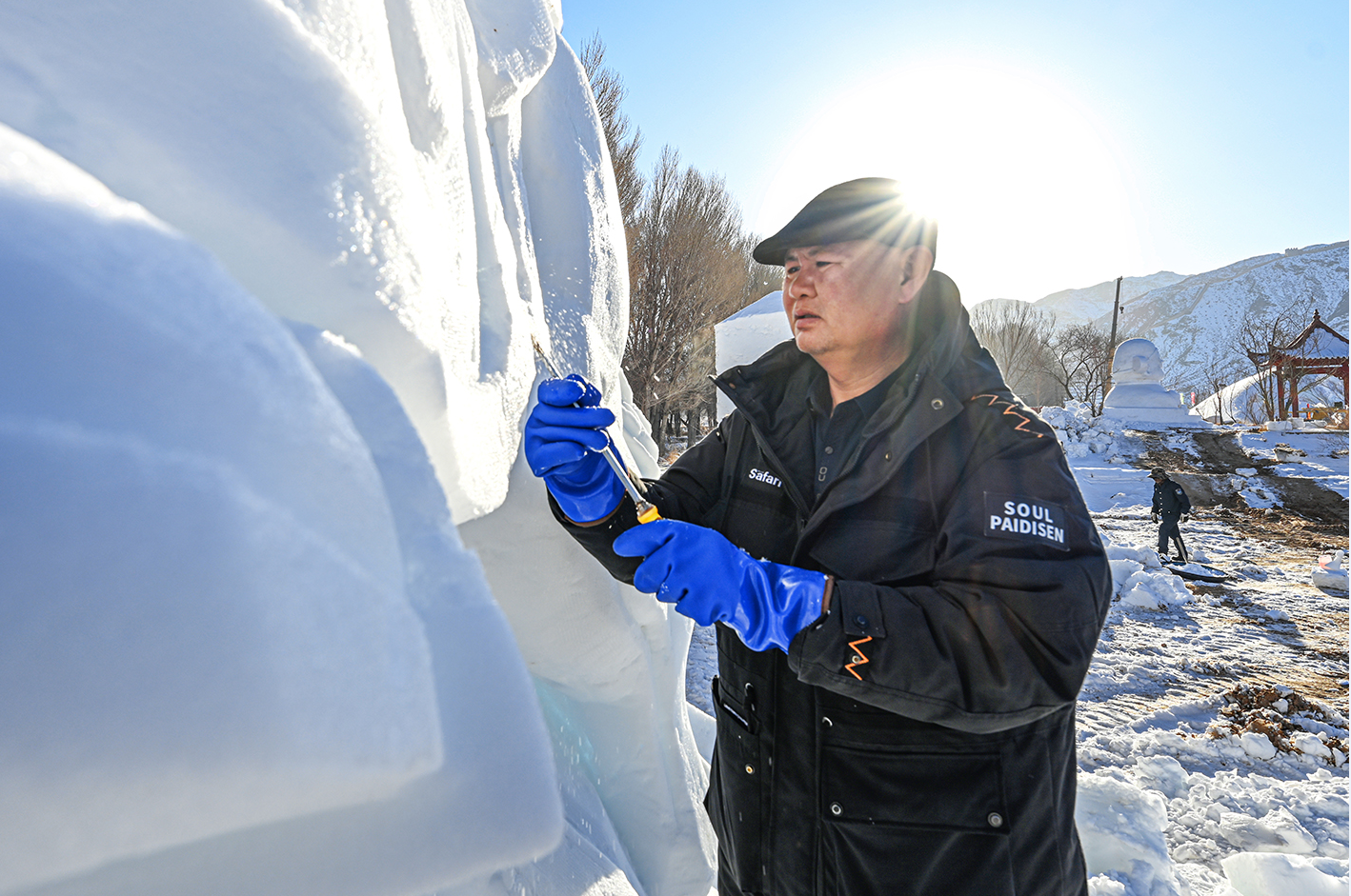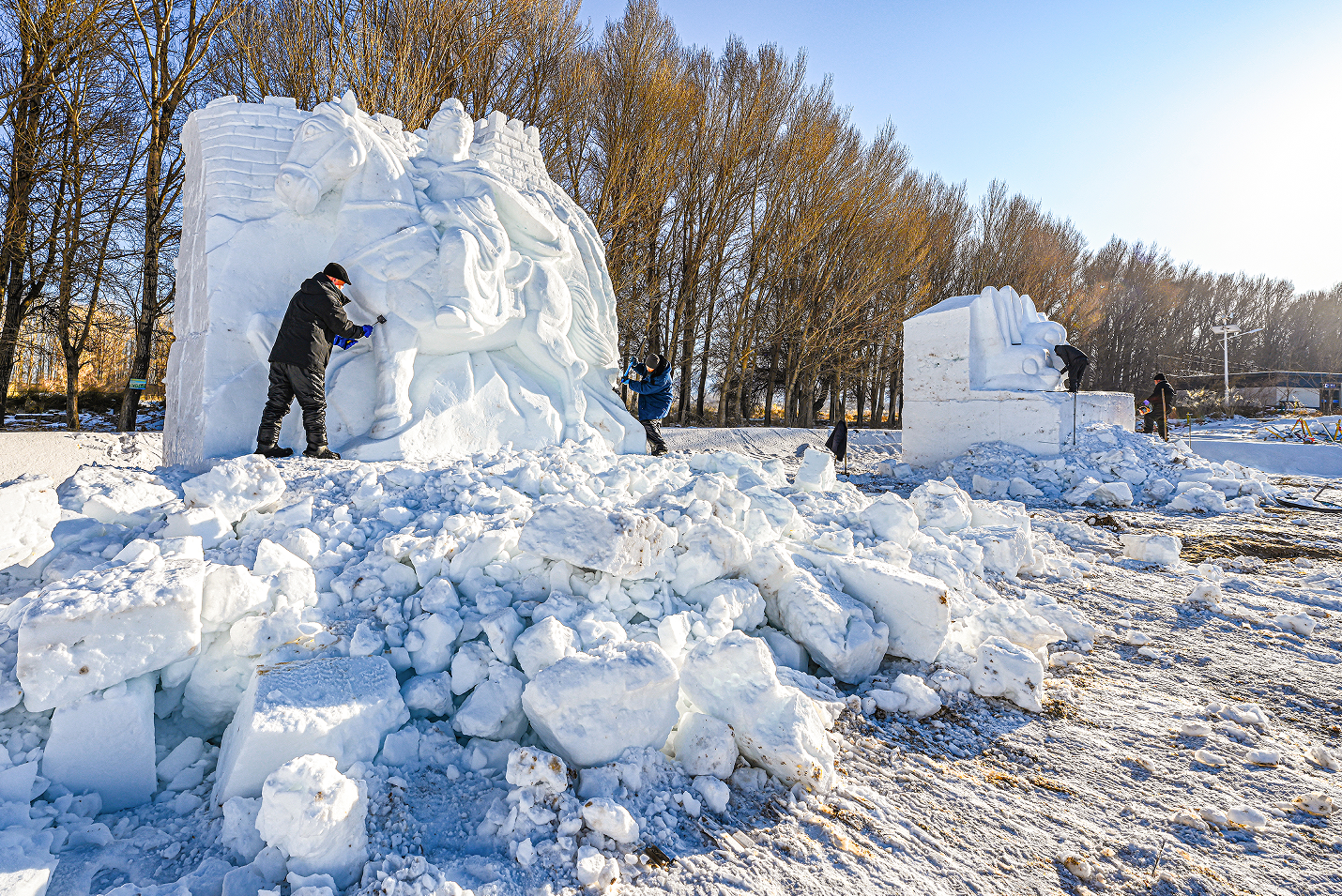 中國甘肅網(wǎng)1月13日訊 據(jù)嘉峪關(guān)日報(bào)報(bào)道(融媒體中心記者 李巍 攝)揚(yáng)鏟塑造型,落刀雕精彩。1月10日,懸壁長城腳下,《昭君出塞》《九尾靈狐》《喜財(cái)神》等雪雕作品,在匠人們的精雕細(xì)琢中漸漸揭開“面紗”。