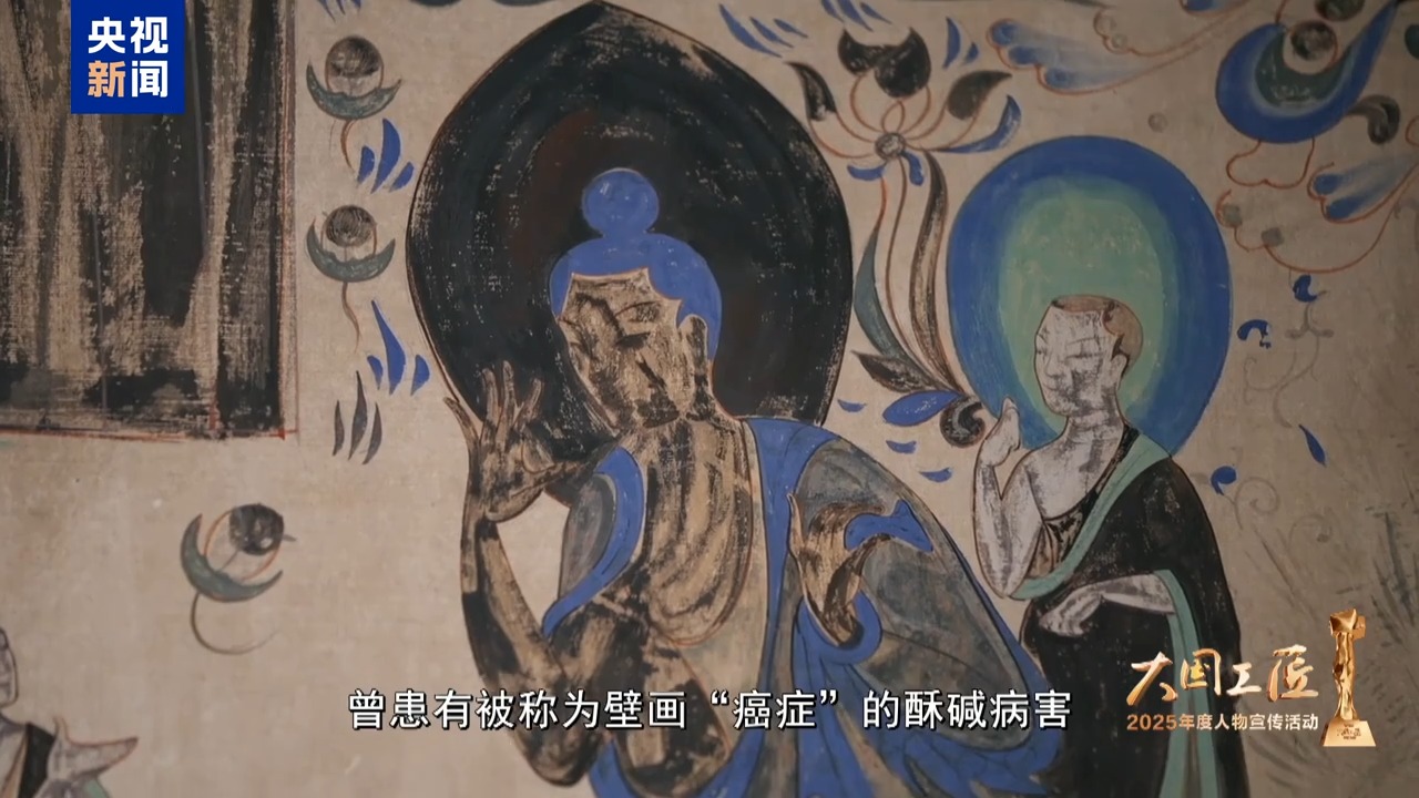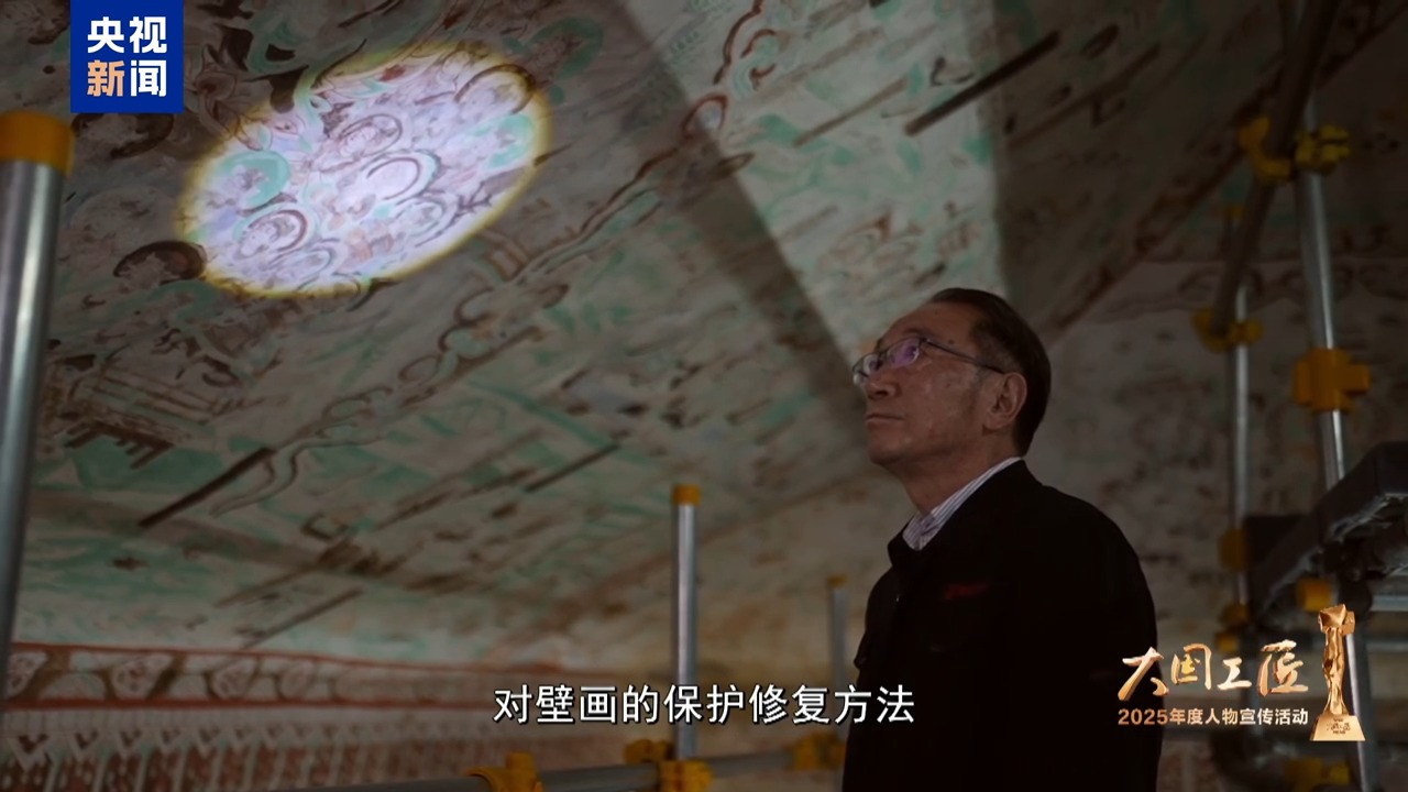 2025年大國工匠年度人物、敦煌研究院壁畫保護修復專家 樊再軒:這里,是我守護一生的地方——敦煌莫高窟,它是大漠深處矗立千年的文明圣殿。45年前,我開始修復敦煌壁畫,總感覺是在和古代的畫工們進行著跨越時空的交流。這些壁畫,它是會呼吸的,它是有生命的。然而,壁畫當中潛藏著很多的可溶鹽,在洞窟里受到溫濕度的影響,反復地潮解、結晶,導致壁畫膨脹、收縮。就像一雙雙無形的手,在一點一點撕裂著壁畫的肌膚,這就是壁畫“癌癥”。我暗下決心:要讓這千年瑰寶在時光的長河里留存得久一點,更久一點。